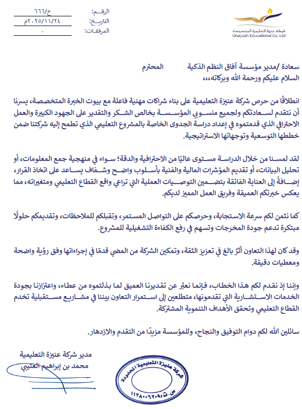 “دراسة الجدوى من شركة آفاق كانت دقيقة للغاية، وقدمت لنا تحليلاً شاملاً للسوق واحتياجات المشروع. ساعدتنا في اتخاذ قرارات استثمارية صائبة.”